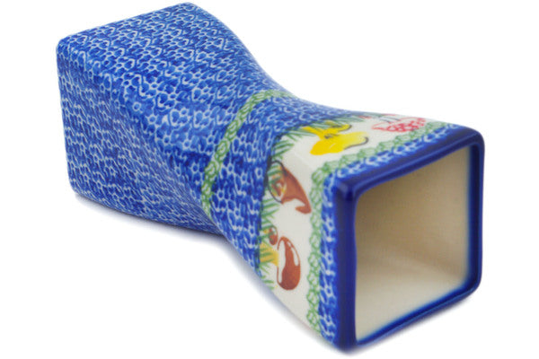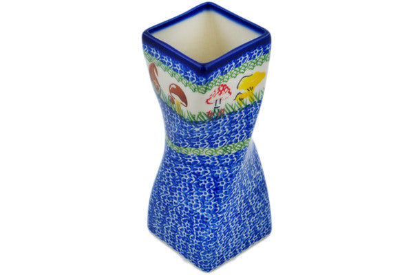 This Polish Pottery Vase is handmade and handpainted by the Ceramika Nina factory in Boleslawiec, Poland. Manufacturer item number H2827P. It is 6¾" high and measures 2½" by 2½". The capacity of this Vase is 15.82 oz (brimful) and it weighs 0.8 lbs. It is part of the Mushroom Garden Collection.