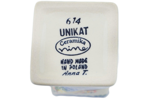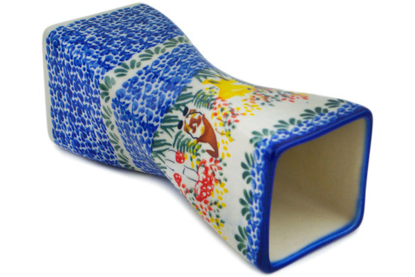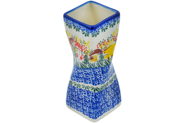 This Polish Pottery Vase is handmade and handpainted by the Ceramika Nina factory in Boleslawiec, Poland. Manufacturer item number H5763O. It is 6¾" high and measures 2½" by 2½". The capacity of this Vase is 15.82 oz (brimful) and it weighs 0.8 lbs. It is part of the Mushroom Love Collection.