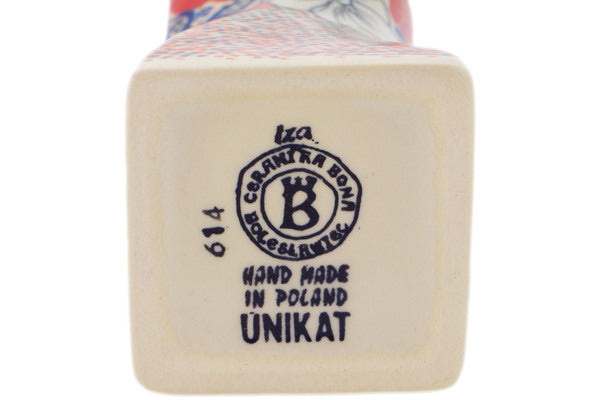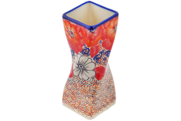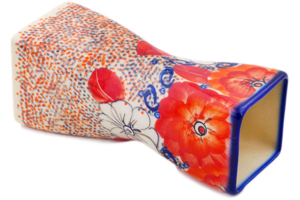 This Polish Pottery Vase is handmade and handpainted by the Ceramika Bona factory in Boleslawiec, Poland. Manufacturer item number H8171Q. It is 6¾" high and measures 2½" by 2½". The capacity of this Vase is 15.82 oz (brimful) and it weighs 0.8 lbs. It is part of the Poppy Passion Collection.