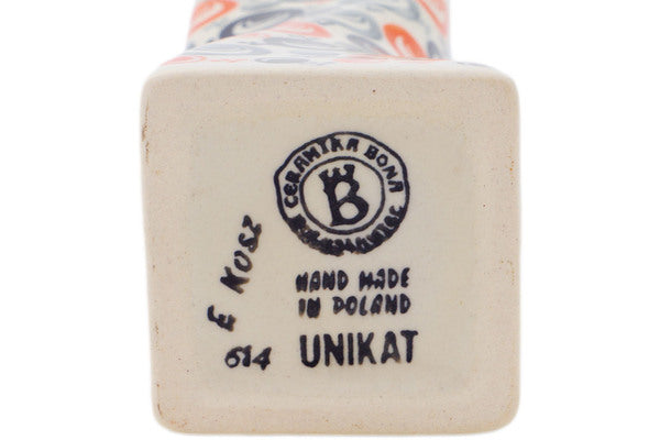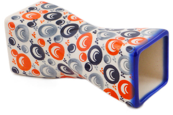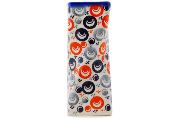 This Polish Pottery Vase is handmade and handpainted by the Ceramika Bona factory in Boleslawiec, Poland. Manufacturer item number H6676R. It is 6¾" high and measures 2½" by 2½". The capacity of this Vase is 15.82 oz (brimful) and it weighs 0.8 lbs. It is part of the Red Peacock Eye Collection.