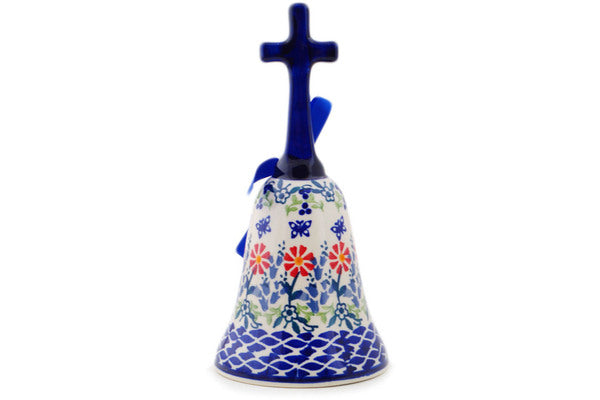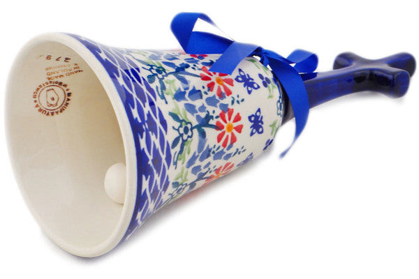 This Polish Pottery Bell Ornament is handmade and handpainted by the Manufaktura factory in Boleslawiec, Poland. Manufacturer item number H7126P. It is 8" high and measures 3¾" by 3¾". The weight of this Bell Ornament is 0.7 lbs. It is part of the Last Summer Flowers Collection.