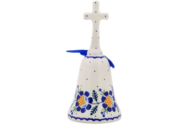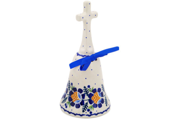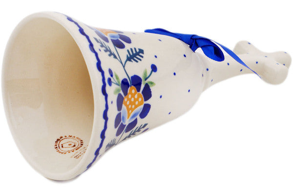 This Polish Pottery Bell Ornament is handmade and handpainted by the Manufaktura factory in Boleslawiec, Poland. Manufacturer item number H7473P. It is 8" high and measures 3¾" by 3¾". The weight of this Bell Ornament is 0.7 lbs. It is part of the Orange And Blue Flower Collection.