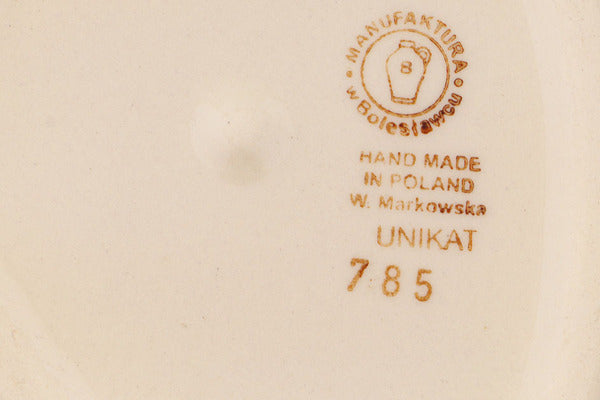This is a Polish pottery Unikat (Signature) Bowl, which means that it has been hand painted with both sponges and brushes and it is signed by the artist who painted it. Unikat pieces are the most intricate works of art. Larger Unikat items take hours of very careful work to finish.