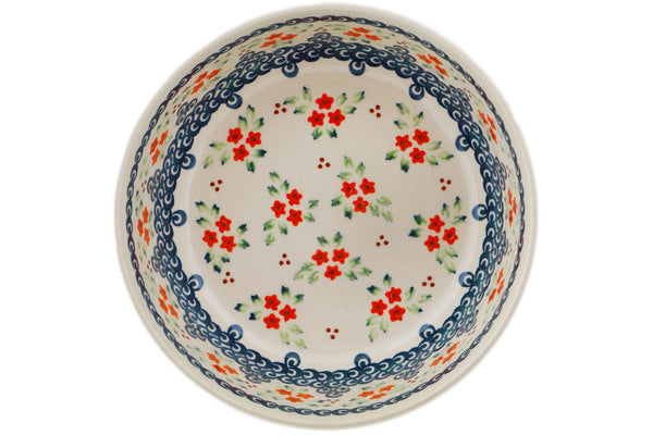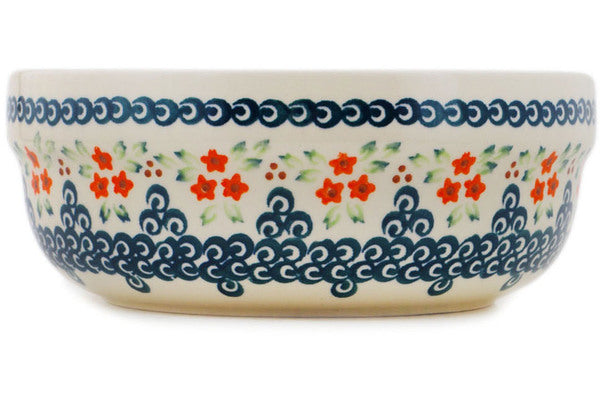 This Polish Pottery Bowl is handmade and handpainted by the Zaklady Ceramiczne factory in Boleslawiec, Poland. Manufacturer item number H8937N. It is 3" high and measures 7¾" by 7¾". The capacity of this Bowl is 47.34 oz (brimful) and it weighs 2.0 lbs. It is part of the Orange Bunches Collection.