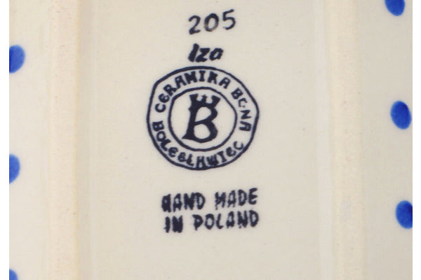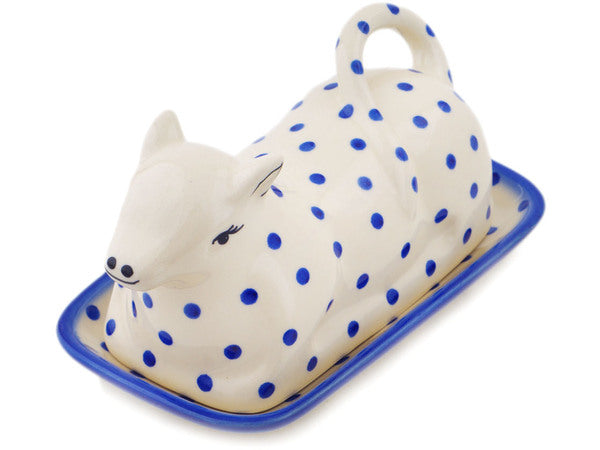 This Polish Pottery Butter Dish is handmade and handpainted by the Ceramika Bona factory in Boleslawiec, Poland. Manufacturer item number H9748Q. It is 4¼" high and measures 8¼" by 4½". The weight of this Butter Dish is 2.1 lbs. It is part of the Blue Polka Dot Collection.
