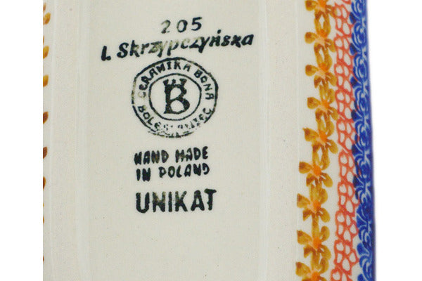This is a Polish pottery Unikat (Signature) Butter Dish, which means that it has been hand painted with both sponges and brushes and it is signed by the artist who painted it. Unikat pieces are the most intricate works of art. Larger Unikat items take hours of very careful work to finish.