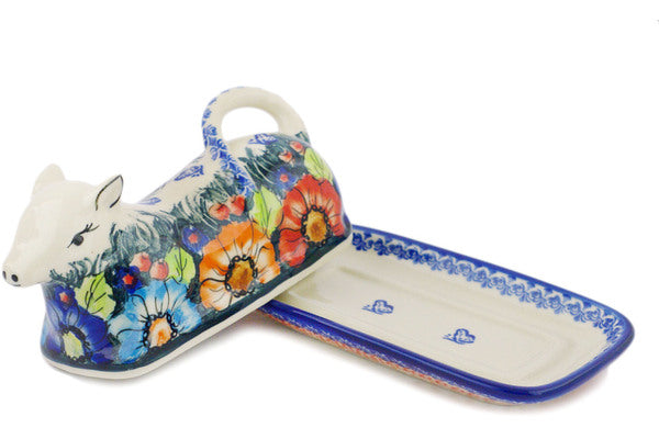 This Polish Pottery Butter Dish is handmade and handpainted by the Ceramika Bona factory in Boleslawiec, Poland. Manufacturer item number H8290H. It is 4¼" high and measures 8¼" by 4½". The weight of this Butter Dish is 2.1 lbs. It is part of the Butterfly Splendor Collection.