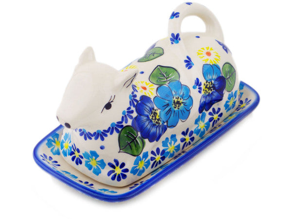 This Polish Pottery Butter Dish is handmade and handpainted by the Ceramika Bona factory in Boleslawiec, Poland. Manufacturer item number H3563Q. It is 4¼" high and measures 8¼" by 4½". The weight of this Butter Dish is 2.1 lbs. It is part of the Endless Summer Collection.