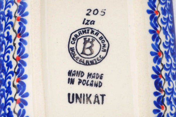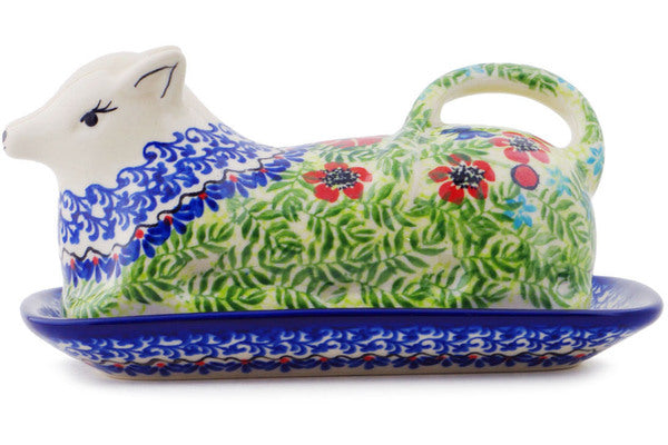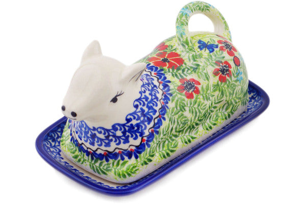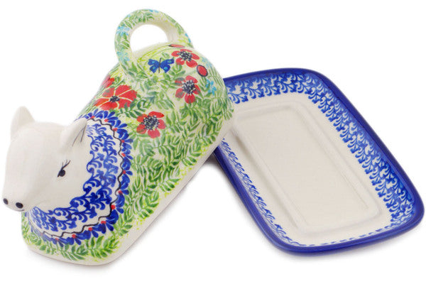 This Polish Pottery Butter Dish is handmade and handpainted by the Ceramika Bona factory in Boleslawiec, Poland. Manufacturer item number H8766Q. It is 4¼" high and measures 8¼" by 4½". The weight of this Butter Dish is 2.1 lbs. It is part of the Metamorphosis Collection.