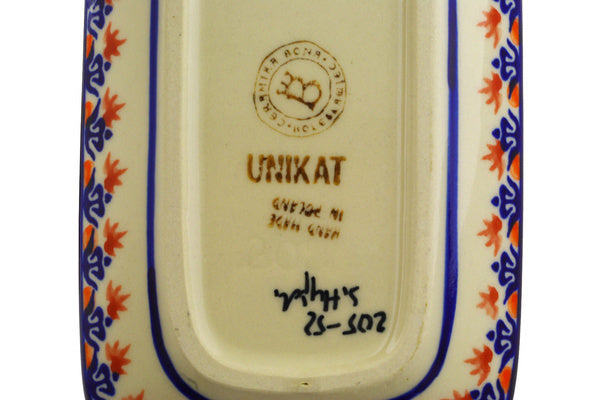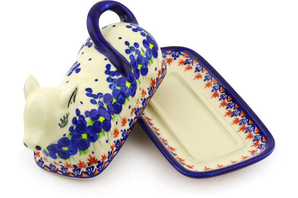This Polish Pottery Butter Dish is handmade and handpainted by the Ceramika Bona factory in Boleslawiec, Poland. Manufacturer item number H1921G. It is 4¼" high and measures 8¼" by 4½". The weight of this Butter Dish is 2.1 lbs. It is part of the Passion Poppy Collection.
