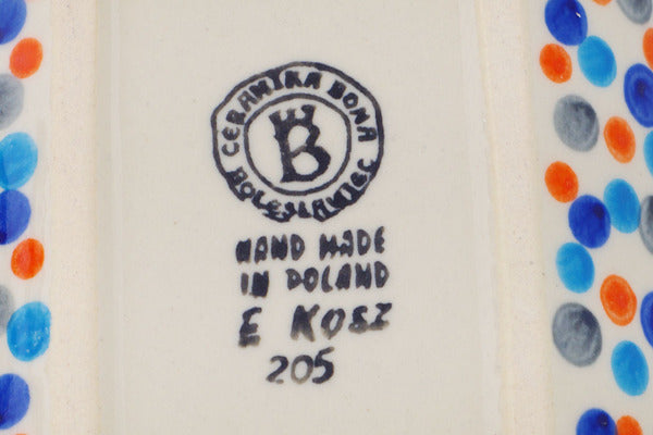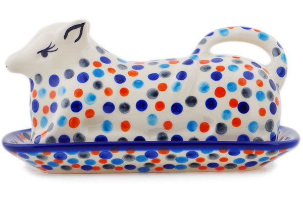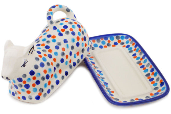 This Polish Pottery Butter Dish is handmade and handpainted by the Ceramika Bona factory in Boleslawiec, Poland. Manufacturer item number H2073R. It is 4¼" high and measures 8¼" by 4½". The weight of this Butter Dish is 2.1 lbs. It is part of the Polka Dot Frenzy Collection.