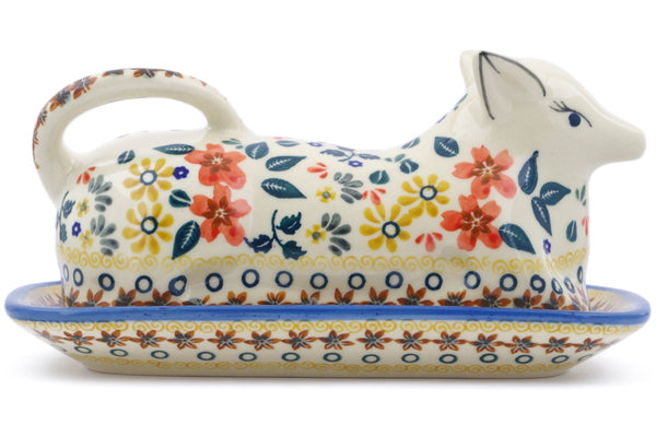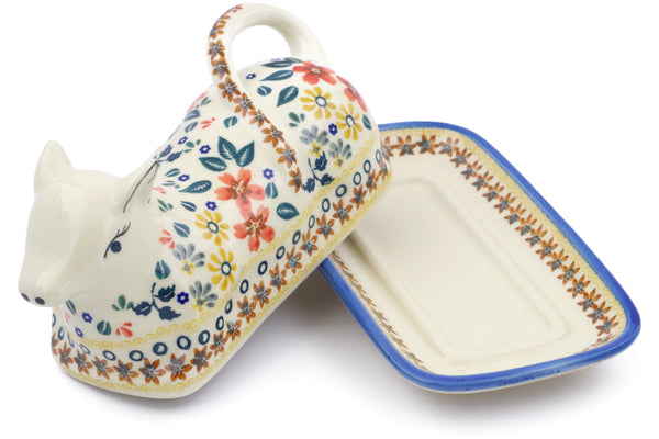 This Polish Pottery Butter Dish is handmade and handpainted by the Ceramika Bona factory in Boleslawiec, Poland. Manufacturer item number H2654J. It is 4¼" high and measures 8¼" by 4½". The weight of this Butter Dish is 2.1 lbs. It is part of the Red Anemone Meadow Collection.