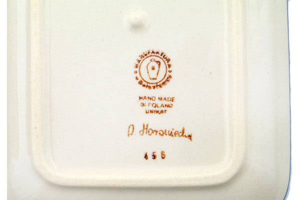 This is a Polish pottery Unikat (Signature) Butter Dish, which means that it has been hand painted with both sponges and brushes and it is signed by the artist who painted it. Unikat pieces are the most intricate works of art. Larger Unikat items take hours of very careful work to finish.