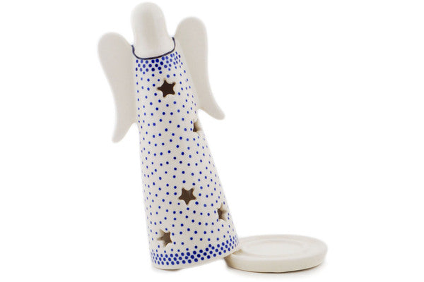 This Polish Pottery Candle Holder is handmade and handpainted by the Manufaktura factory in Boleslawiec, Poland. Manufacturer item number H8394Q. It is 7¾" high and measures 3¼" by 3¼". The weight of this Candle Holder is 0.6 lbs. It is part of the Misty Blue Collection.