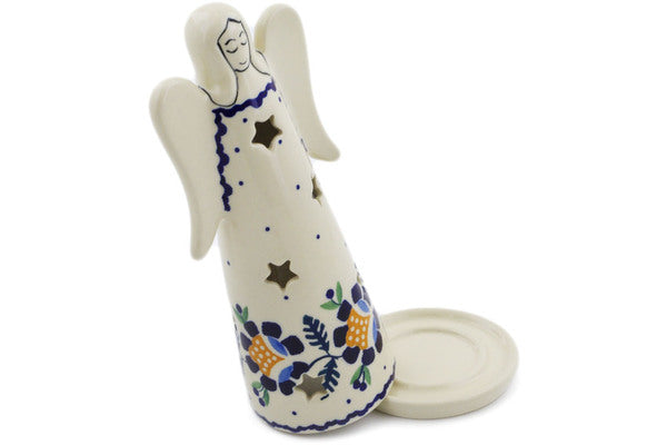 This Polish Pottery Candle Holder is handmade and handpainted by the Manufaktura factory in Boleslawiec, Poland. Manufacturer item number H3114K. It is 7¾" high and measures 3¼" by 3¼". The weight of this Candle Holder is 0.6 lbs. It is part of the Orange And Blue Flower Collection.
