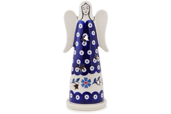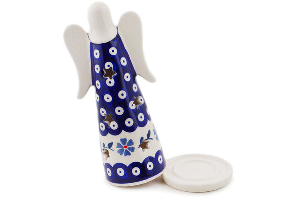 This Polish Pottery Candle Holder is handmade and handpainted by the Manufaktura factory in Boleslawiec, Poland. Manufacturer item number H7169O. It is 7¾" high and measures 3¼" by 3¼". The weight of this Candle Holder is 0.6 lbs. It is part of the Peacock Forget-Me-Not Collection.
