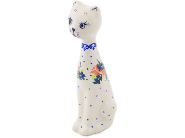 This Polish Pottery Cat Figurine is handmade and handpainted by the Ceramika Bona factory in Boleslawiec, Poland. Manufacturer item number H8811Q. It is 8¼" high and measures 2¼" by 2¼". The weight of this Cat Figurine is 0.8 lbs. It is part of the California Poppies Collection.