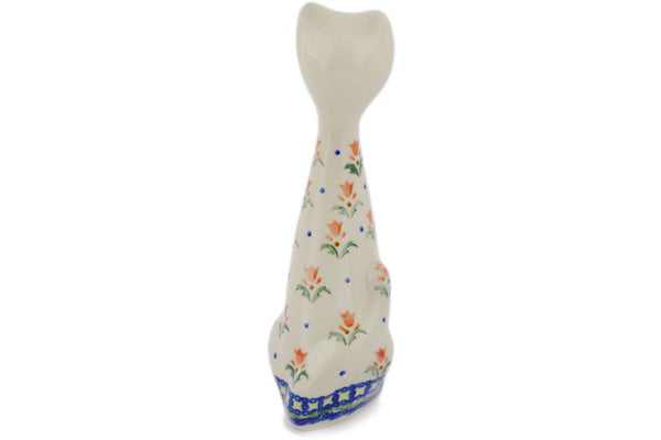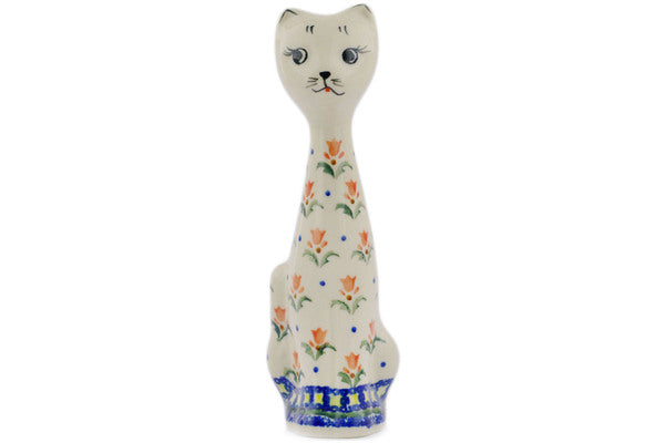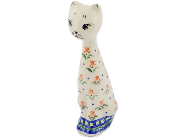 This Polish Pottery Cat Figurine is handmade and handpainted by the Ceramika Bona factory in Boleslawiec, Poland. Manufacturer item number H5723R. It is 8¼" high and measures 2¼" by 2¼". The weight of this Cat Figurine is 0.8 lbs. It is part of the Cocentric Tulips Collection.