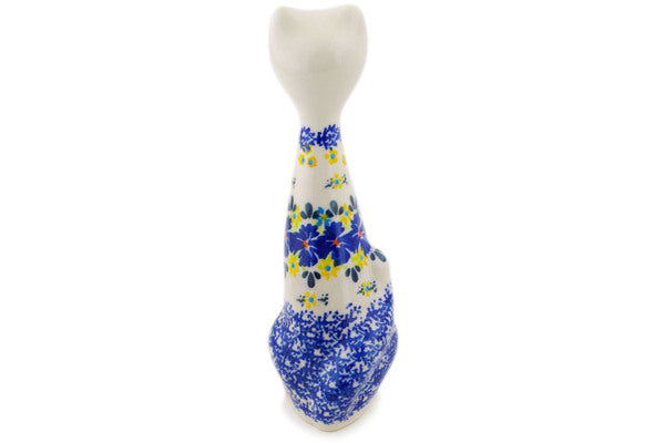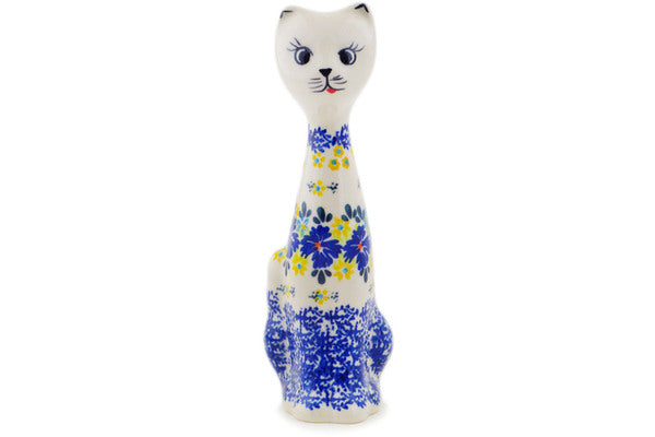 This Polish Pottery Cat Figurine is handmade and handpainted by the Ceramika Bona factory in Boleslawiec, Poland. Manufacturer item number H8740Q. It is 8¼" high and measures 2¼" by 2¼". The weight of this Cat Figurine is 0.8 lbs. It is part of the Cornflower Meadow Collection.