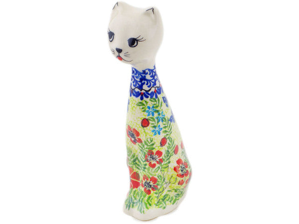 This Polish Pottery Cat Figurine is handmade and handpainted by the Ceramika Bona factory in Boleslawiec, Poland. Manufacturer item number H8779Q. It is 8¼" high and measures 2¼" by 2¼". The weight of this Cat Figurine is 0.8 lbs. It is part of the Metamorphosis Collection.