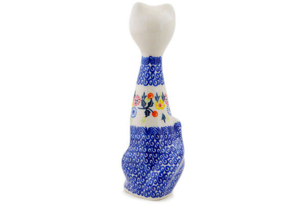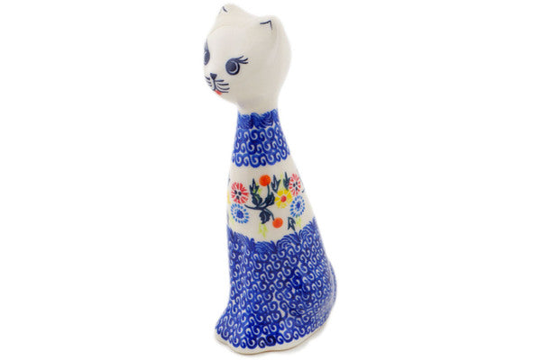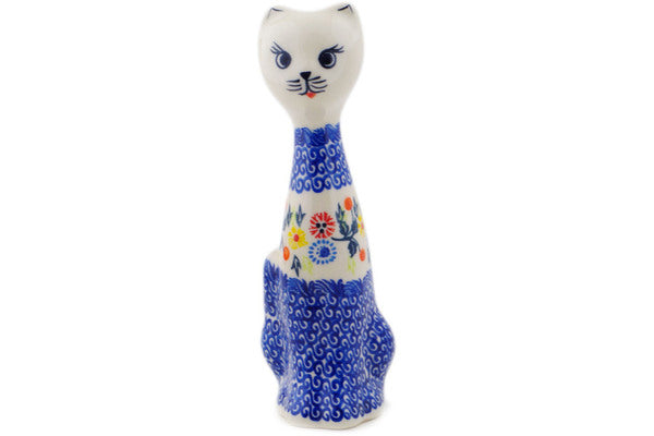 This Polish Pottery Cat Figurine is handmade and handpainted by the Ceramika Bona factory in Boleslawiec, Poland. Manufacturer item number H1899R. It is 8¼" high and measures 2¼" by 2¼". The weight of this Cat Figurine is 0.8 lbs. It is part of the Pastel Spring Wreath Collection.