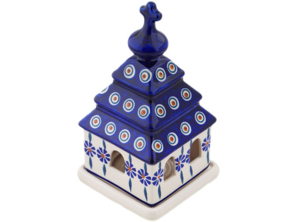 This Polish Pottery Chapel Candle Holder is handmade and handpainted by the Manufaktura factory in Boleslawiec, Poland. Manufacturer item number H8391Q. It is 8¼" high and measures 4½" by 4½". The weight of this Chapel Candle Holder is 1.7 lbs. It is part of the Peacock Collection.