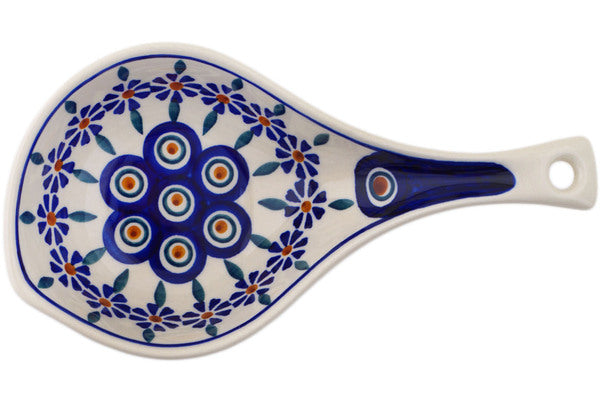 This Polish Pottery Condiment Dish is handmade and handpainted by the Manufaktura factory in Boleslawiec, Poland. Manufacturer item number H7417P. It is 1½" high and measures 8¼" by 4¼". The capacity of this Condiment Dish is 6.49 oz (brimful) and it weighs 0.6 lbs. It is part of the Peacock Collection.