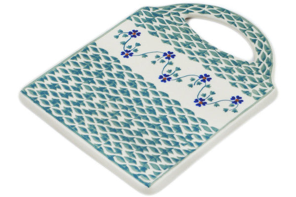 This Polish Pottery Cutting Board is handmade and handpainted by the Manufaktura factory in Boleslawiec, Poland. Manufacturer item number H6613O. It is ¼" high and measures 8" by 6¼". The weight of this Cutting Board is 0.8 lbs. It is part of the Lucky Blue Clover Collection.