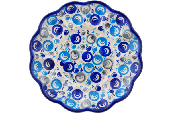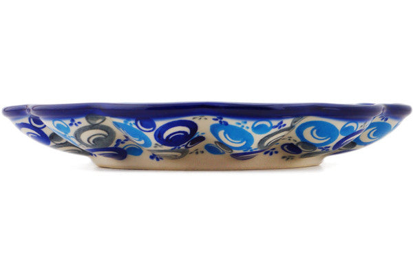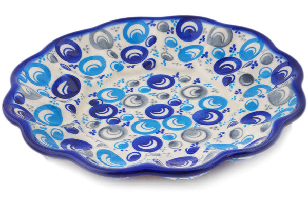 This Polish Pottery Egg Plate is handmade and handpainted by the Ceramika Bona factory in Boleslawiec, Poland. Manufacturer item number H3136Q. It is 1½" high and measures 8½" by 8½". The weight of this Egg Plate is 1.2 lbs. It is part of the Blue Peacock Eye Collection.