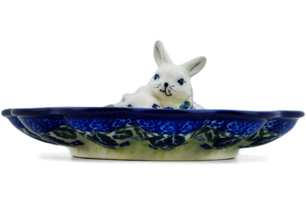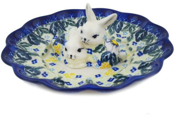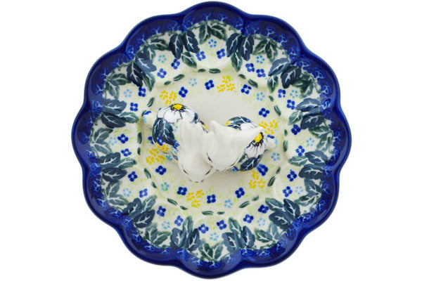 This Polish Pottery Egg Plate is handmade and handpainted by the Ceramika Nina factory in Boleslawiec, Poland. Manufacturer item number H1403P. It is 3½" high and measures 8½" by 8½". The weight of this Egg Plate is 1.4 lbs. It is part of the Floral Fantasy Collection.