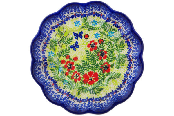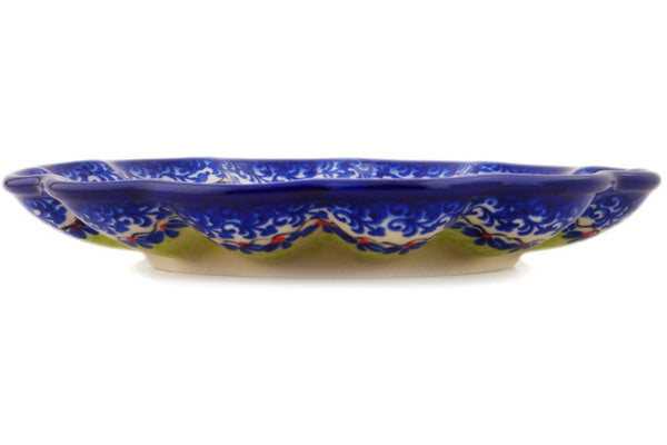 This Polish Pottery Egg Plate is handmade and handpainted by the Ceramika Bona factory in Boleslawiec, Poland. Manufacturer item number H8709Q. It is 1½" high and measures 8½" by 8½". The weight of this Egg Plate is 1.2 lbs. It is part of the Metamorphosis Collection.