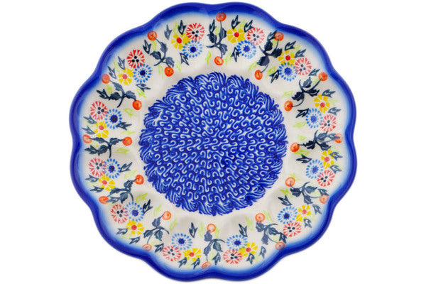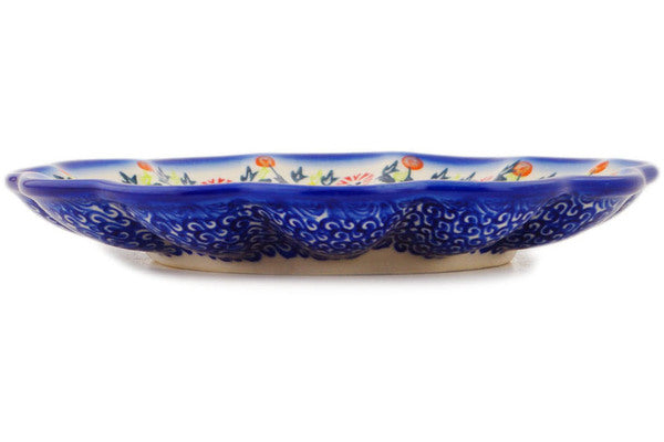 This Polish Pottery Egg Plate is handmade and handpainted by the Ceramika Bona factory in Boleslawiec, Poland. Manufacturer item number H1903R. It is 1½" high and measures 8½" by 8½". The weight of this Egg Plate is 1.2 lbs. It is part of the Pastel Spring Wreath Collection.