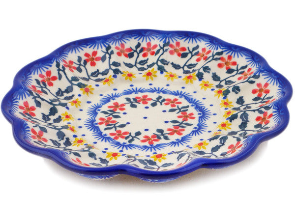 This Polish Pottery Egg Plate is handmade and handpainted by the Ceramika Bona factory in Boleslawiec, Poland. Manufacturer item number H4129Q. It is 1½" high and measures 8½" by 8½". The weight of this Egg Plate is 1.2 lbs. It is part of the Red Sunflower Collection.