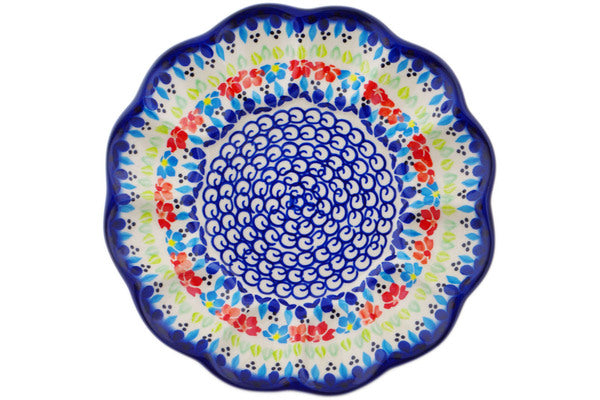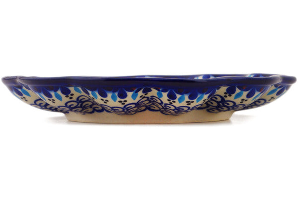 This Polish Pottery Egg Plate is handmade and handpainted by the Ceramika Bona factory in Boleslawiec, Poland. Manufacturer item number H3058Q. It is 1½" high and measures 8½" by 8½". The weight of this Egg Plate is 1.2 lbs. It is part of the Spring Flowers Collection.