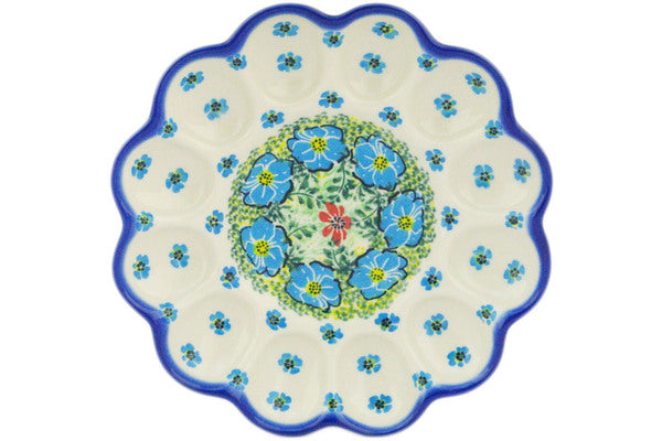 This Polish Pottery Egg Plate is handmade and handpainted by the Dalia factory in Boleslawiec, Poland. Manufacturer item number H1615R. It is 1¼" high and measures 8½" by 7¾". The weight of this Egg Plate is 1.4 lbs. It is part of the Tunnel Vision Collection.