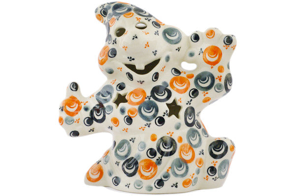 This Polish Pottery Ghost Figurine is handmade and handpainted by the Ceramika Bona factory in Boleslawiec, Poland. Manufacturer item number H7175Q. It is 7½" high and measures 7¼" by 4¼". The weight of this Ghost Figurine is 1.7 lbs. It is part of the Red Peacock Eye Collection.