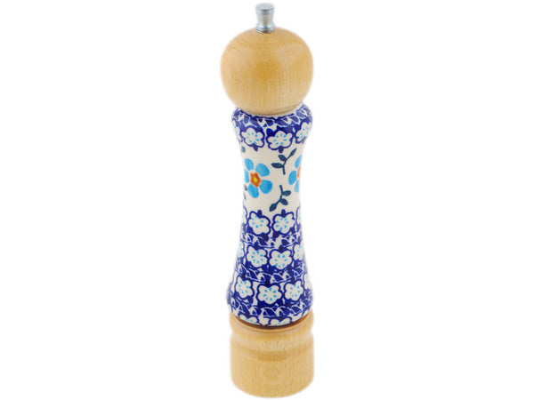This Polish Pottery Grinder is handmade and handpainted by the Manufaktura factory in Boleslawiec, Poland. Manufacturer item number H3060R. It is 8½" high and measures 2" by 2". The weight of this Grinder is 0.5 lbs. It is part of the Blue Chain Collection.