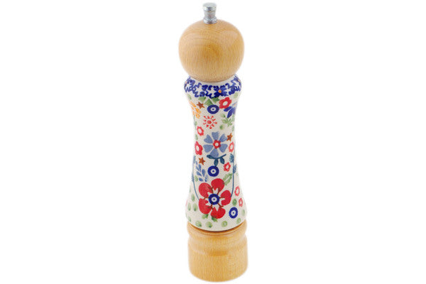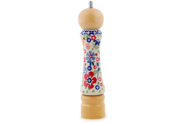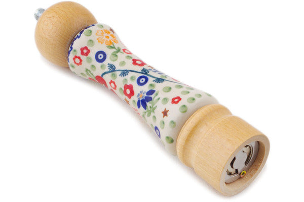 This Polish Pottery Grinder is handmade and handpainted by the Manufaktura factory in Boleslawiec, Poland. Manufacturer item number H6358R. It is 8½" high and measures 2" by 2". The weight of this Grinder is 0.5 lbs. It is part of the Botanical Sprinkles Collection.
