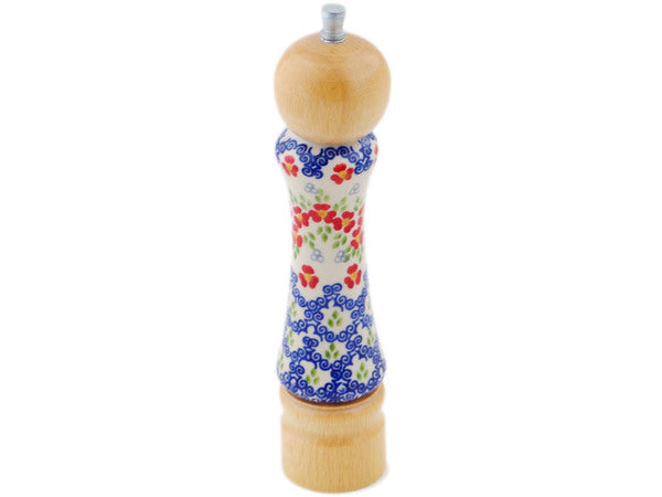 This Polish Pottery Grinder is handmade and handpainted by the Manufaktura factory in Boleslawiec, Poland. Manufacturer item number H3061R. It is 8½" high and measures 2" by 2". The weight of this Grinder is 0.5 lbs. It is part of the Red Chains Collection.