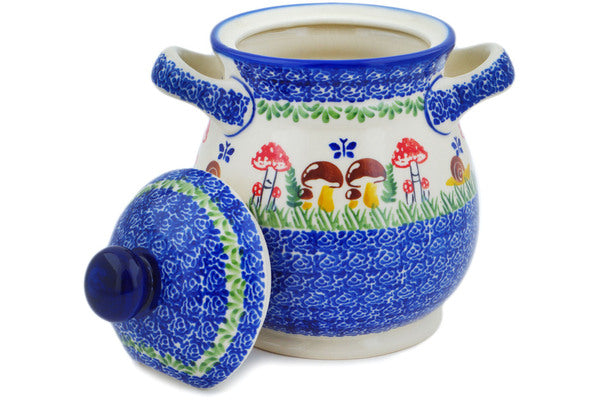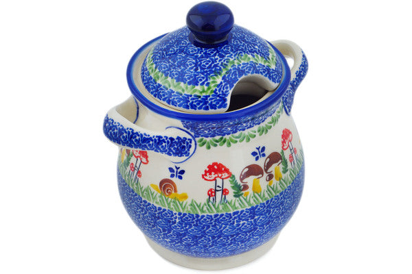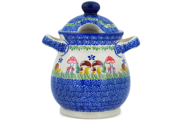 This Polish Pottery Jar with Lid and Handles is handmade and handpainted by the Ceramika Nina factory in Boleslawiec, Poland. Manufacturer item number H3286P. It is 8" high and measures 7" by 6". The capacity of this Jar with Lid and Handles is 48.52 oz (brimful) and it weighs 3.0 lbs. It is part of the Gardens In Poland Collection.