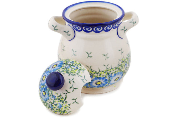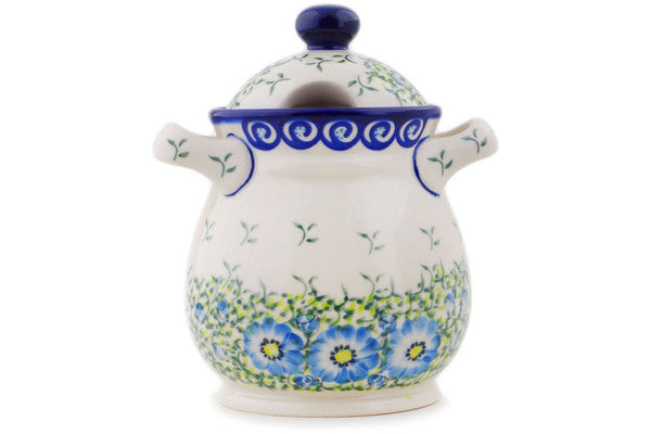 This Polish Pottery Jar with Lid and Handles is handmade and handpainted by the Ceramika Bona factory in Boleslawiec, Poland. Manufacturer item number H2098R. It is 8" high and measures 7" by 6". The capacity of this Jar with Lid and Handles is 48.52 oz (brimful) and it weighs 3.0 lbs. It is part of the Gorgeous Morning Glory Collection.