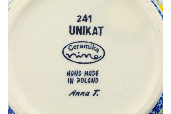 This is a Polish pottery Unikat (Signature) Jar with Lid and Handles, which means that it has been hand painted with both sponges and brushes and it is signed by the artist who painted it. Unikat pieces are the most intricate works of art. Larger Unikat items take hours of very careful work to finish.