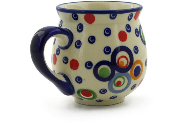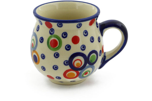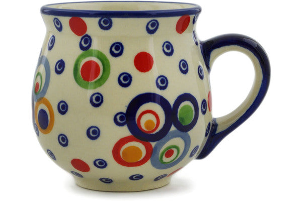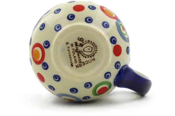 This Polish Pottery Bubble Mug is handmade and handpainted by the Manufaktura factory in Boleslawiec, Poland. Manufacturer item number H9502J. It is 3¼" high and measures 4¼" by 3¼". The capacity of this Bubble Mug is 8.45 oz (brimful) and it weighs 0.5 lbs. It is part of the Bubble Machine Collection.