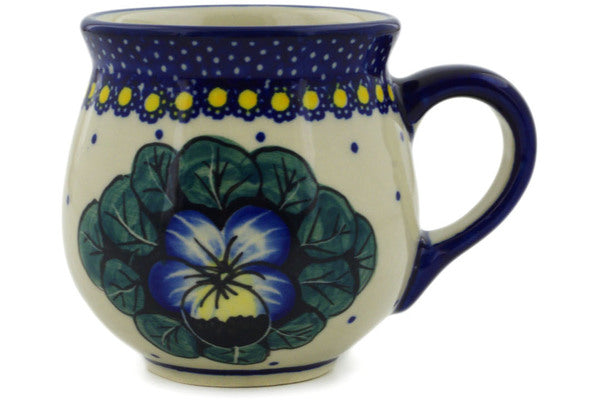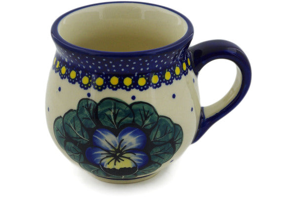 This Polish Pottery Bubble Mug is handmade and handpainted by the Manufaktura factory in Boleslawiec, Poland. Manufacturer item number H9706J. It is 3¼" high and measures 4¼" by 3¼". The capacity of this Bubble Mug is 8.45 oz (brimful) and it weighs 0.5 lbs. It is part of the Flower In The Grass Collection.