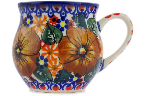This Polish Pottery Bubble Mug is handmade and handpainted by the Ceramika Bona factory in Boleslawiec, Poland. Manufacturer item number H5711R. It is 3" high and measures 4" by 2¾". The capacity of this Bubble Mug is 7.78 oz (brimful) and it weighs 0.5 lbs. It is part of the Mauve Poppies Collection.