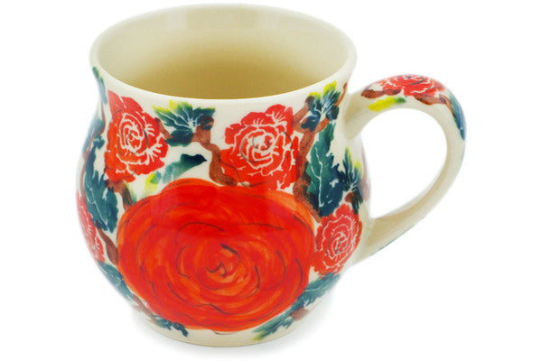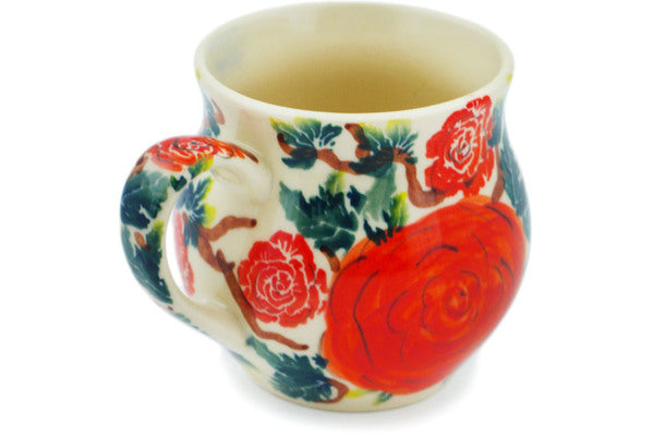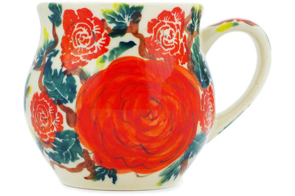 This Polish Pottery Bubble Mug is handmade and handpainted by the Ceramika Bona factory in Boleslawiec, Poland. Manufacturer item number H9731M. It is 3" high and measures 4" by 2¾". The capacity of this Bubble Mug is 7.78 oz (brimful) and it weighs 0.5 lbs. It is part of the Thornless Beauty Collection.