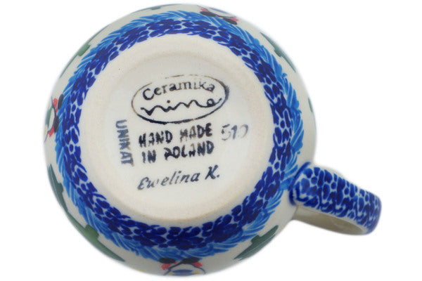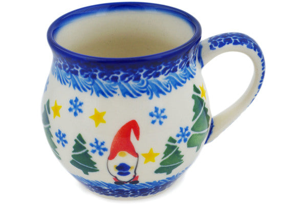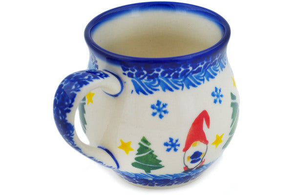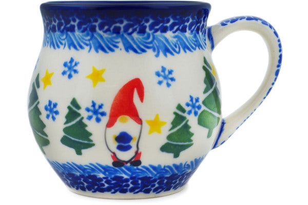 This Polish Pottery Bubble Mug is handmade and handpainted by the Ceramika Nina factory in Boleslawiec, Poland. Manufacturer item number H1479P. It is 3" high and measures 4" by 2¾". The capacity of this Bubble Mug is 7.78 oz (brimful) and it weighs 0.5 lbs. It is part of the Twinkle Twinkle Little Gnome Collection.