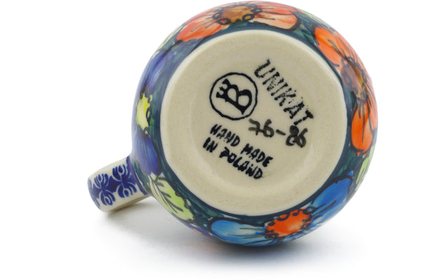This is a Polish pottery Unikat (Signature) Creamer, which means that it has been hand painted with both sponges and brushes and it is signed by the artist who painted it. Unikat pieces are the most intricate works of art. Larger Unikat items take hours of very careful work to finish.