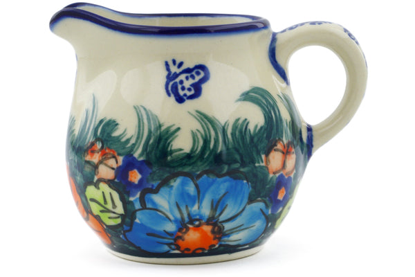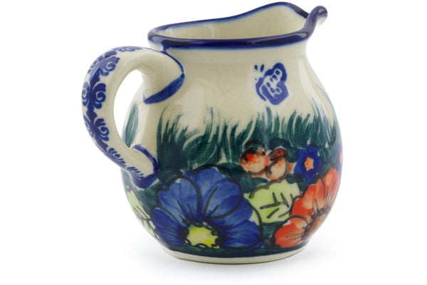 This Polish Pottery Creamer is handmade and handpainted by the Ceramika Bona factory in Boleslawiec, Poland. Manufacturer item number H3957J. It is 3¼" high and measures 4¼" by 3". The capacity of this Creamer is 8.45 oz (brimful) and it weighs 0.4 lbs. It is part of the Butterfly Splendor Collection.