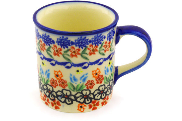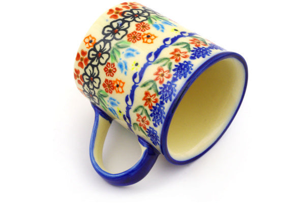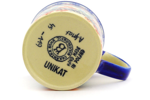 This Polish Pottery Mug is handmade and handpainted by the Ceramika Bona factory in Boleslawiec, Poland. Manufacturer item number H2044G. It is 3½" high and measures 4½" by 3¼". The capacity of this Mug is 8.45 oz (brimful) and it weighs 0.7 lbs. It is part of the Fanciful Ladybug Collection.